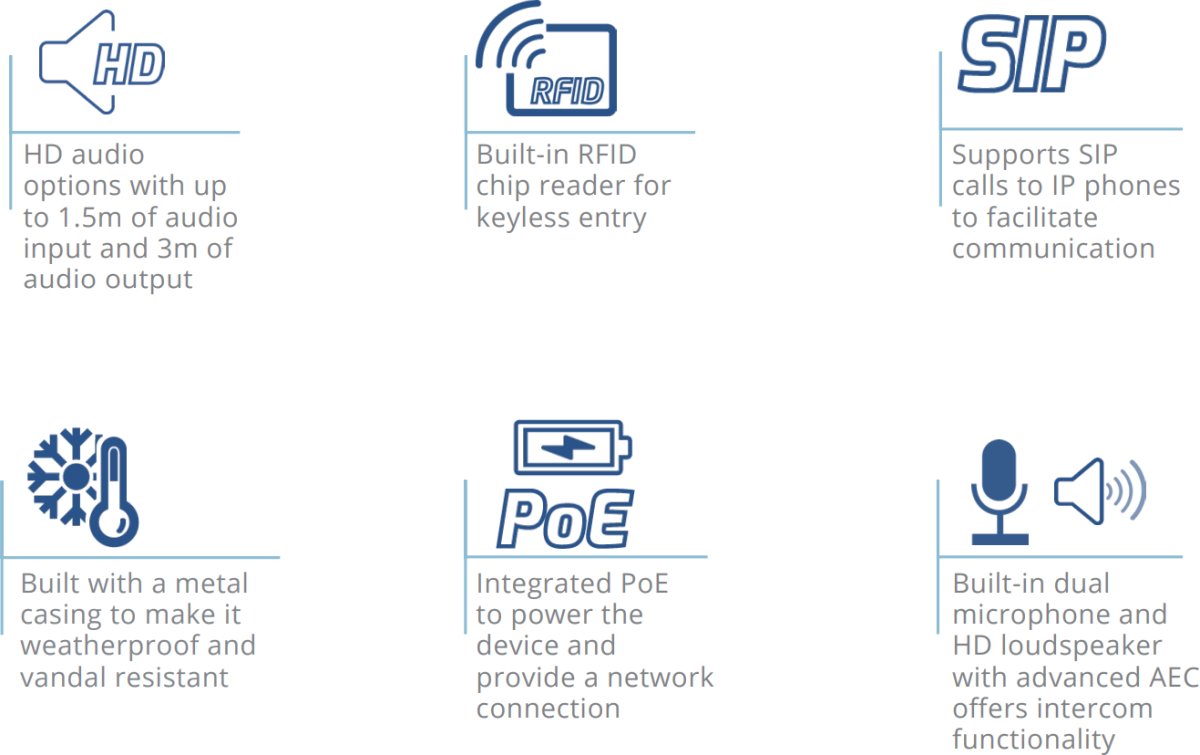 - Built-in dual microphone and HD loudspeaker with advanced AEC offers intercom functionality