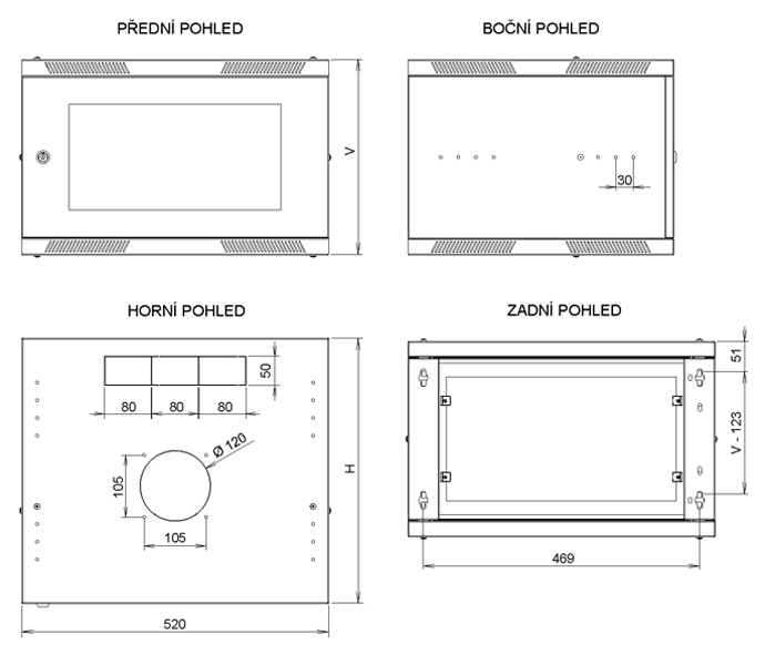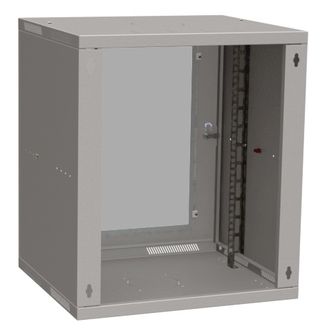 Solarix cabinet wall mount flat-pack SENSA LITE 12U 450mm, glass door, RAL 7035