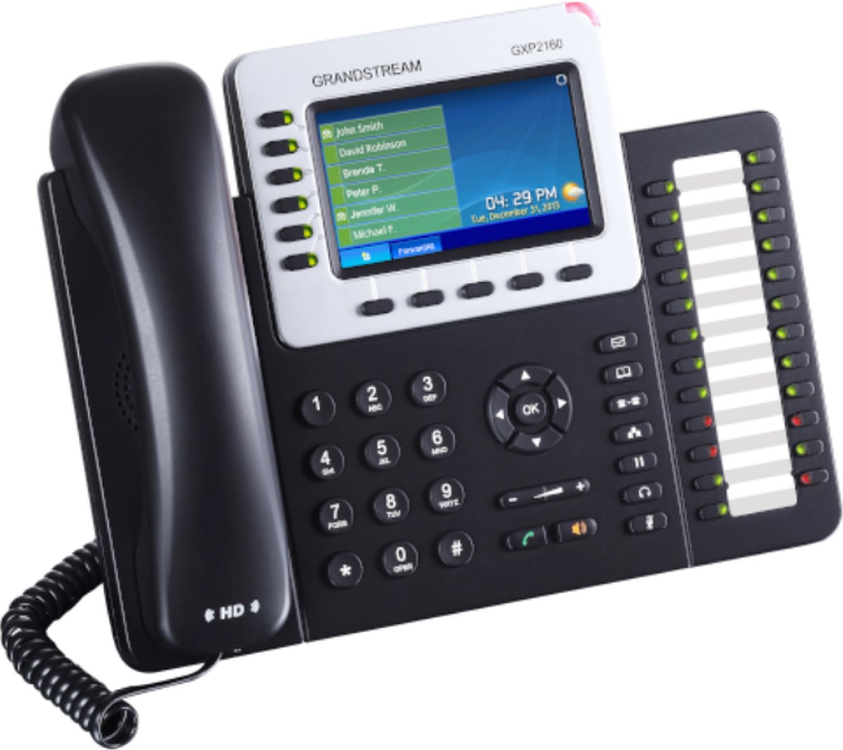As all Grandstream IP phones do, the GXP2160 features state-of-the-art security encryption technology (SRTP and TLS). The GXP2160 supports a variety of automated provisioning options, including zero-configuration with Grandstream’s UCM series IP PBXs, encrypted XML files and TR-069, to make mass deployment extremely easy.