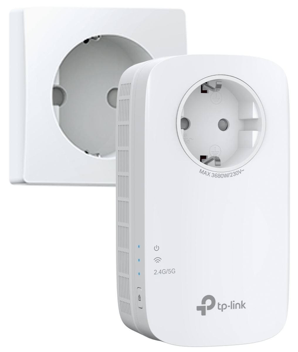 The TP-Link RE660X is a dual-band Wi-Fi 6 range extender operating simultaneously in the 2.4GHz and 5GHz bands, delivering throughput of up to 1.78Gbps. The extender is equipped with (1) 1Gbit port and offers an extra power socket for connecting another electrical device.