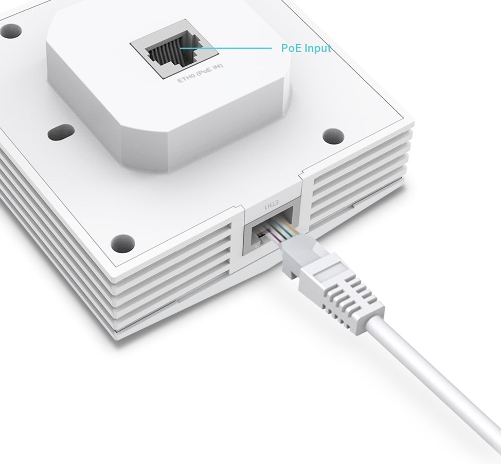 AP има два 10/100/1000 Mbps LAN порта, от които първият порт поддържа PoE IN (802.3af/at стандарти) и се намира на гърба на устройството - към пластмасовата кутия в стената. Вторият Gigabit порт се намира в долната част на устройството и е предназначен само като порт за данни без PoE.