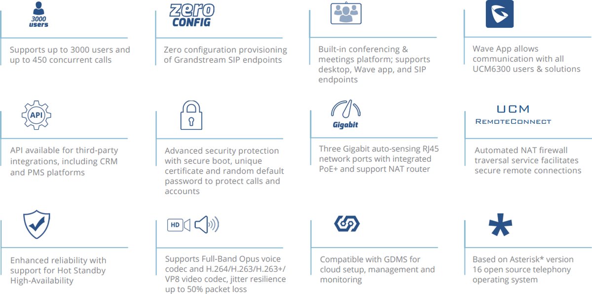 - Поддържа до 3000 потребители и до 450 едновременни разговора