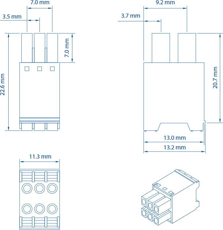 Това е автоматичен превод. Оригиналния текст може да видите тук2×3 PIN конектор е предназначен основно за продукти на Teltonika RUT955, RUT956 и TRB145. Конекторът съдържа общо 6 отвора за кабели със сечение от 16 до 24 AWG.
