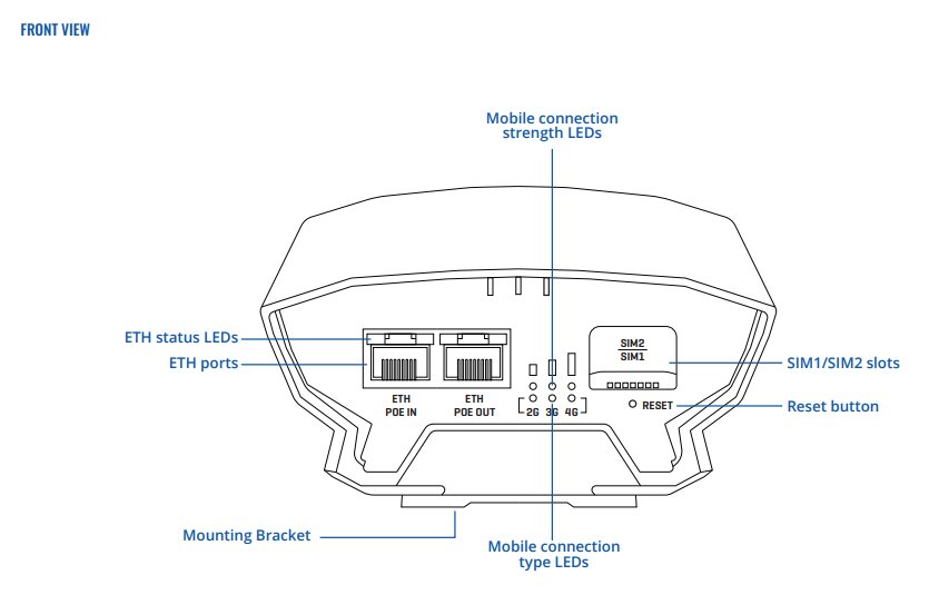 Външният рутер OTD140 разполага със специален и издръжлив пластмасов корпус IP55 и интегрирана монтажна скоба, което прави този външен 4G рутер лесен за разгръщане и способен да издържа на външни условия. Освен това този външен рутер е оборудван с LTE Cat 4 свързаност, съвместимост с RMS за възможности за дистанционно управление и два PoE вход/изход Ethernet порта.