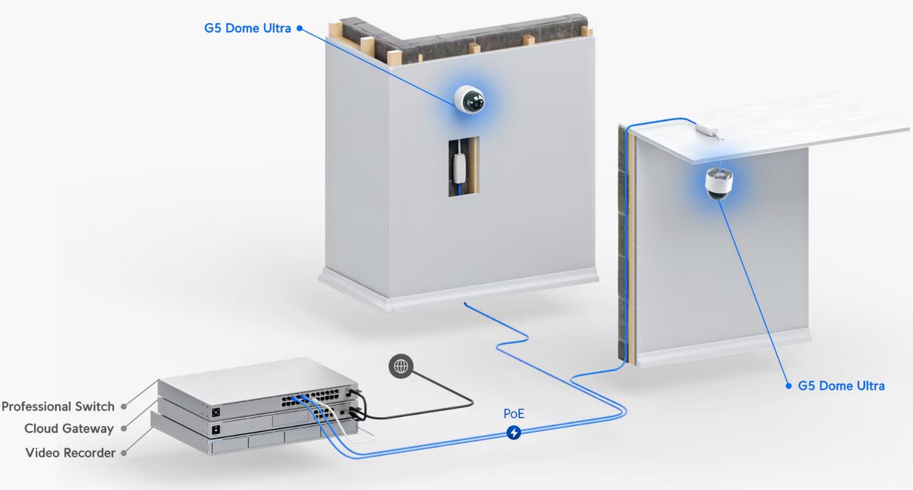 Това е автоматичен превод. Оригиналния текст може да видите тукUVC-G5-Dome-Ultra е камера от 5-то поколение от серията UniFi Video. Той разполага с 1/2,4" CMOS сензор с разделителна способност 4MP (2688 x 1512 px, 16:9) при 30 FPS . Фиксираният обектив предлага зрително поле от 102,4° хоризонтално , 54,9° вертикално и 120,6° диагонално. Камерата е оборудвана с (1) 10/100Mbps Ethernet порт, който осигурява захранване на камерата чрез PoE 802.3af или пасивно PoE с входно напрежение 37 - 57 V DC . За нощен режим камерата е оборудвана с IR осветител с обхват 20 m . Максималната консумация на енергия е само 4,2 W !