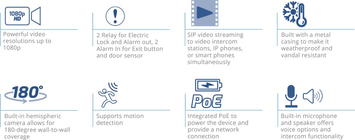 - Интегрирано PoE за захранване на устройството и осигуряване на мрежова връзка