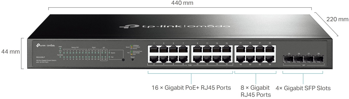 TP-Link SG2428LP - Omada 24-port gigabit smart swtitch with 16-port PoE+