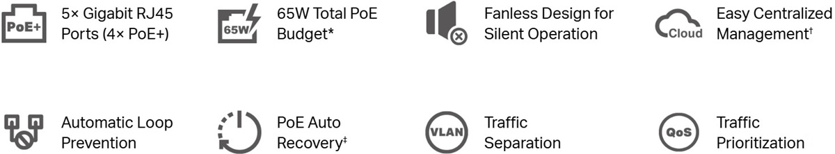 TP-Link ES205GP - Omada 5-port Easy Managed Switch, 4x PoE+