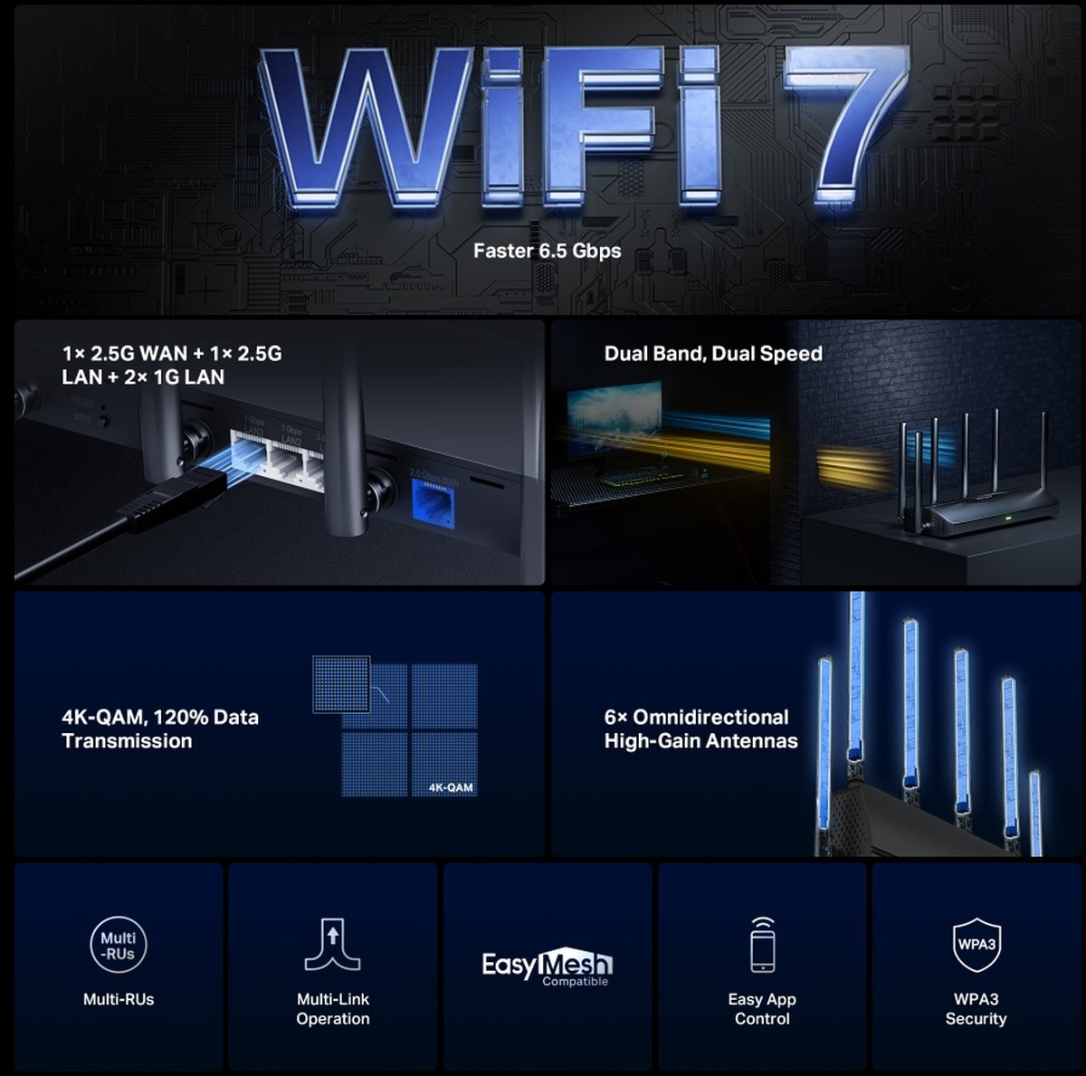 MERCUSYS MR37BE Dual Band Wi-Fi 7 router