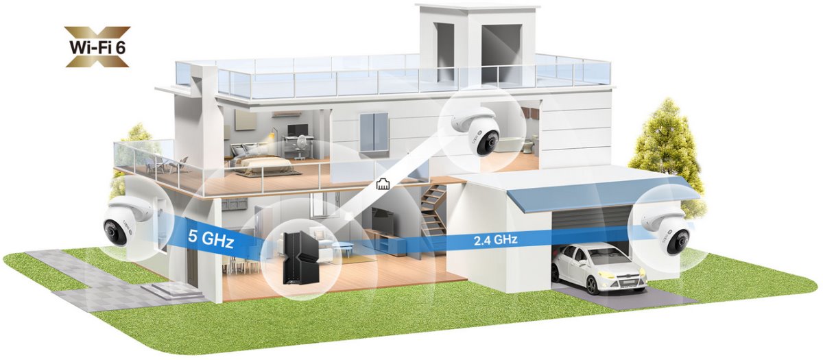 - Двулентова Wi-Fi 6 връзка : Свържете камерата към Wi-Fi 6 рутер и се насладете на подобрена скорост и по-голяма стабилност.