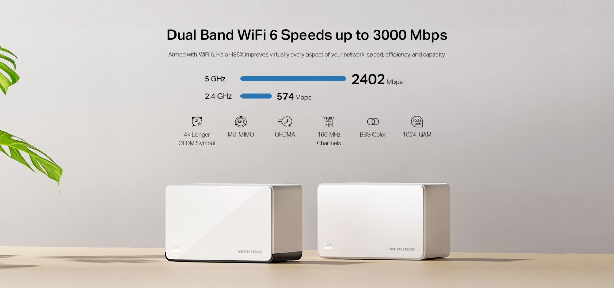 MERCUSYS Halo H85X(2-pack), AX3000 Whole Home Mesh WiFi 6 System