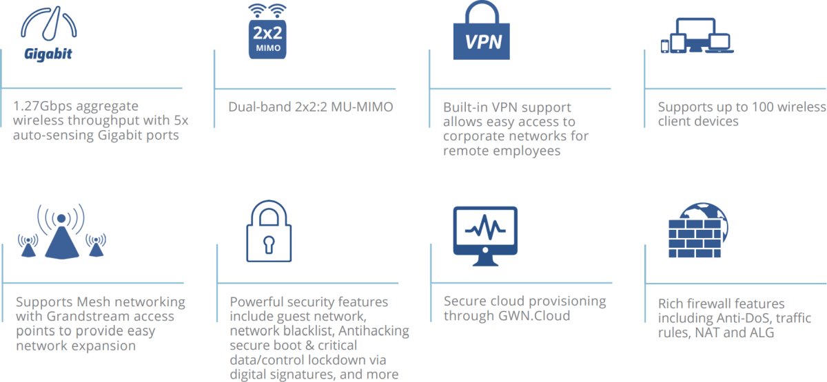 - Поддържа Mesh мрежи с точки за достъп Grandstream за лесно разширяване на мрежата