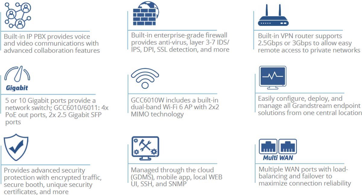 Grandstream GCC6011all-in-one solution (VPN router, Firewall, PoE switch and IP PBX)