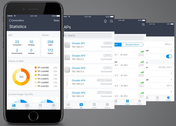 Достъпвайте дистанционно и конфигурирайте OC400 от удобството на вашия смартфон, където и да сте по света. Кликнете тук, за да видите устройства, съвместими с приложението Omada .