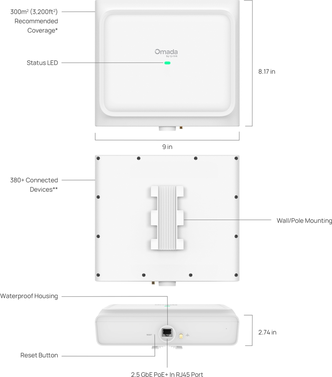 Това е автоматичен превод. Оригиналния текст може да видите тукТрибандовата Wi-Fi 7 точка за достъп TP-Link EAP772-Outdoor за корпоративни нужди е с издръжлив, напълно запечатан IP68 водоустойчив корпус, което я прави прахоустойчива и способна да издържи на потапяне във вода. Тя е устойчива на най-суровите външни условия. Осигурява връзка с общ капацитет до 9,2 Gbps . Общият капацитет се постига чрез едновременно излъчване в три честотни ленти със скорости до 5765 Mbps в 6 GHz честотната лента, 2882 Mbps в 5 GHz честотната лента и 688 Mbps в 2,4 GHz честотната лента с максимална ширина на канала до 320 MHz и най-новите технологии MLO, Multi-RU, MU-MIMO и OFDMA , които ви позволяват да комуникирате с множество устройства едновременно или да използвате множество безжични честоти за комуникация. Подобрена сигурност с WPA3 криптиране. Мрежовата връзка се осигурява от 1x 2.5G LAN порт с поддръжка на PoE 802.3at .