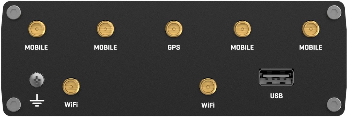 • Интерфейси: 5× 10/100/1000 Mbps (1× WAN, 4× LAN), 4× SMA за 5G, 2× RP-SMA за WiFi, 1× SMA за GNSS, 1× цифров вход, 1× цифров изход, 1× USB, 2× слот за SIM карта (Mini SIM – 2FF)