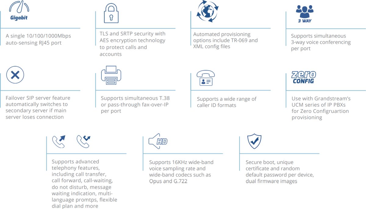 - Проектиран и тестван за пълна оперативна съвместимост с водещи IP-PBX системи, софт-суичове и SIP-базирани среди