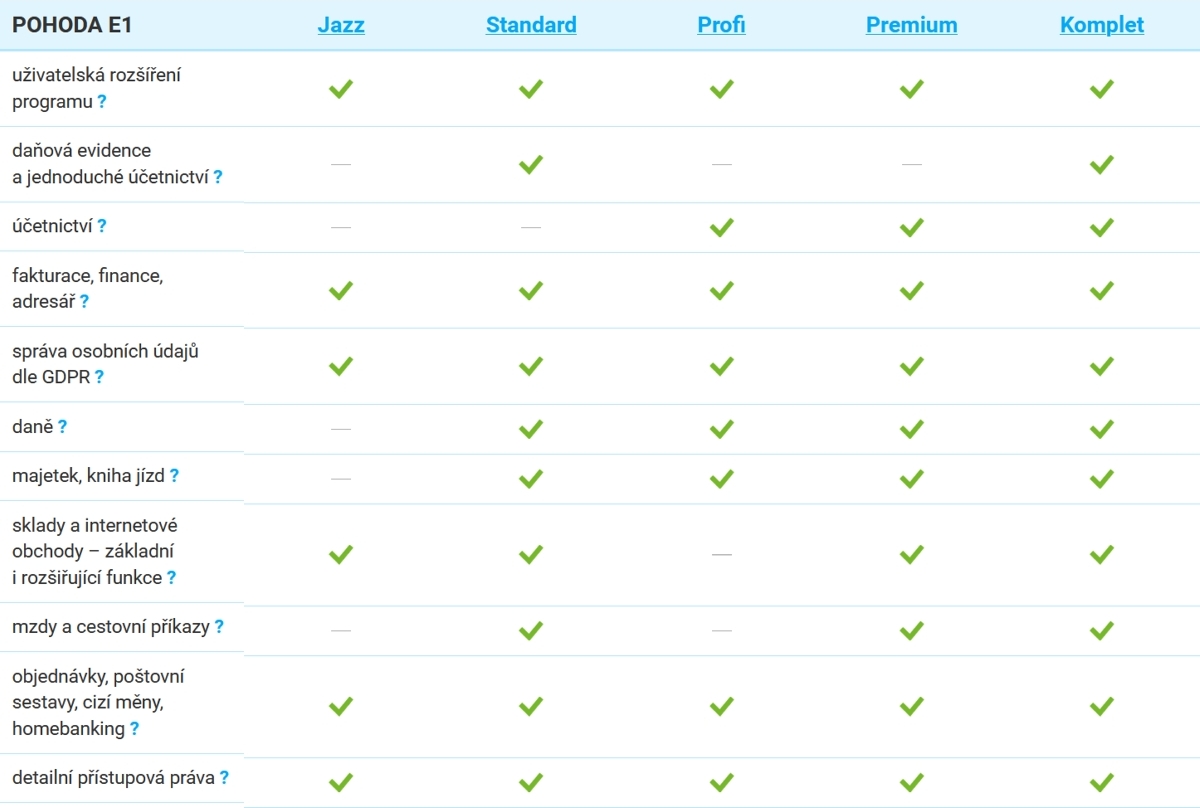 POHODA ще се погрижи за вашите счетоводни и данъчни записи . Управлението е лесно и интуитивно , така че дори начинаещ няма да се изгуби, когато работи в счетоводната програма. Освен това имате достатъчна свобода да задавате други функции и параметри, така че вашата POHODA ще расте заедно с вашия бизнес. Можете да водите счетоводство за себе си или по поръчка за неограничен брой компании . Серията E1 е идеална за взискателни потребители.