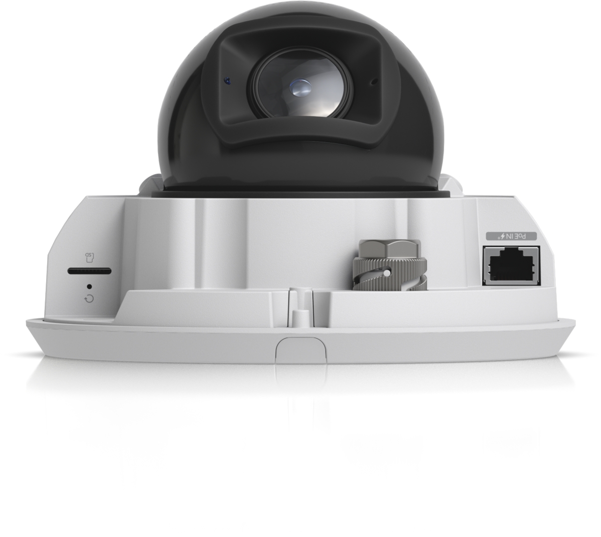 Ubiquiti G6 Pro Dome features an 8MP sensor (3840 x 2160px) at 30 fps, a varifocal lens (2.36x optical zoom), and adaptive IR illumination for night vision up to 40 meters. The camera has a durable housing made of aluminum and polycarbonate, with IP66 protection against dust and powerful water jets. It connects to the network via Gigabit LAN with PoE+ support and a maximum power consumption of 15W.