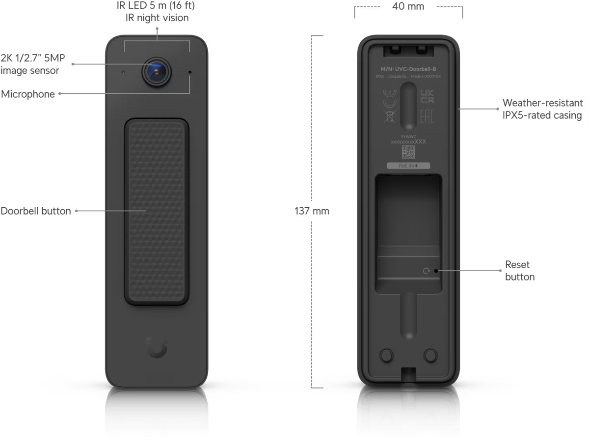 Ubiquiti UVC-Doorbell-Lite-B, UniFi Protect video doorbell, black