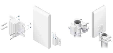 UniFi AC Mesh Pro AP може да се монтира на стена или стълб (всички аксесоари са включени).