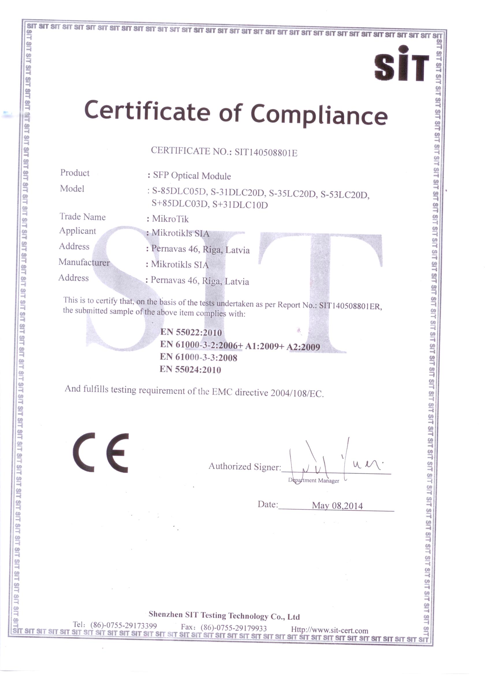 Units are tested and compatible with RB260GS, RB2011LS, RB2011LS-IN, RB2011UAS-IN, RB2011UAS-RM, RB2011UAS-2HnD, RB2011UAS-2HnD-IN CCR1036-12G-4S. Units are compatible with non-MikroTik SFP devices as well.