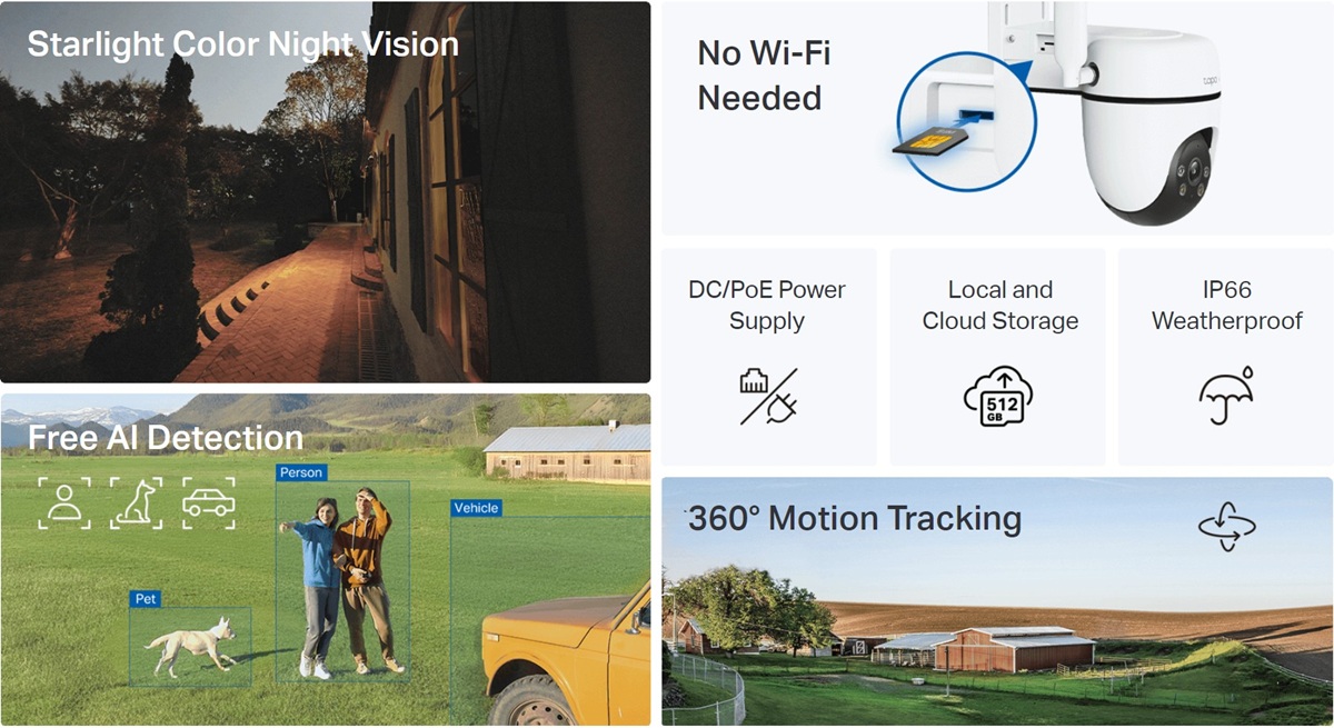 - Flexible storage options - Store recorded videos on an installed microSD card (up to 512 GB) or use Tapo Care cloud storage service