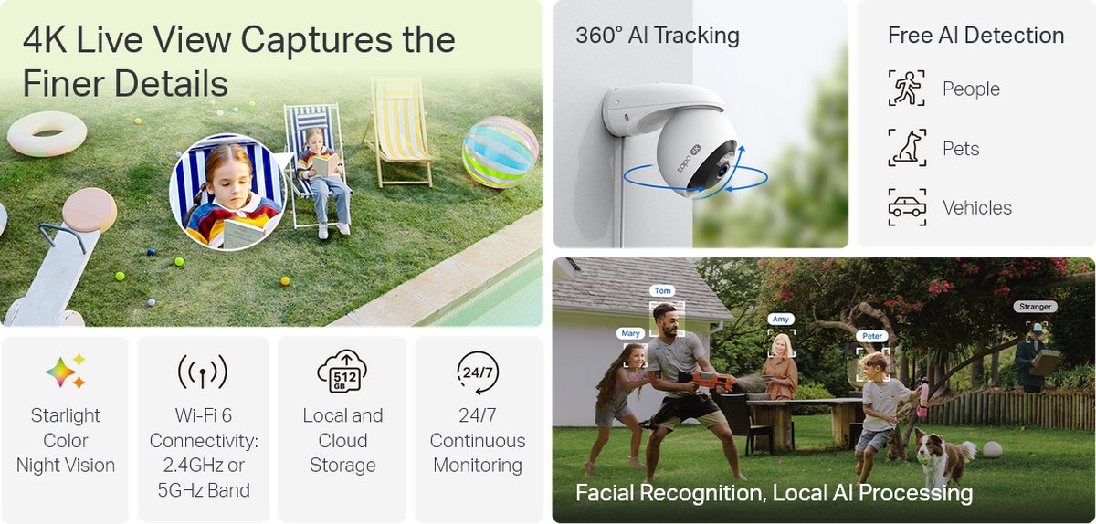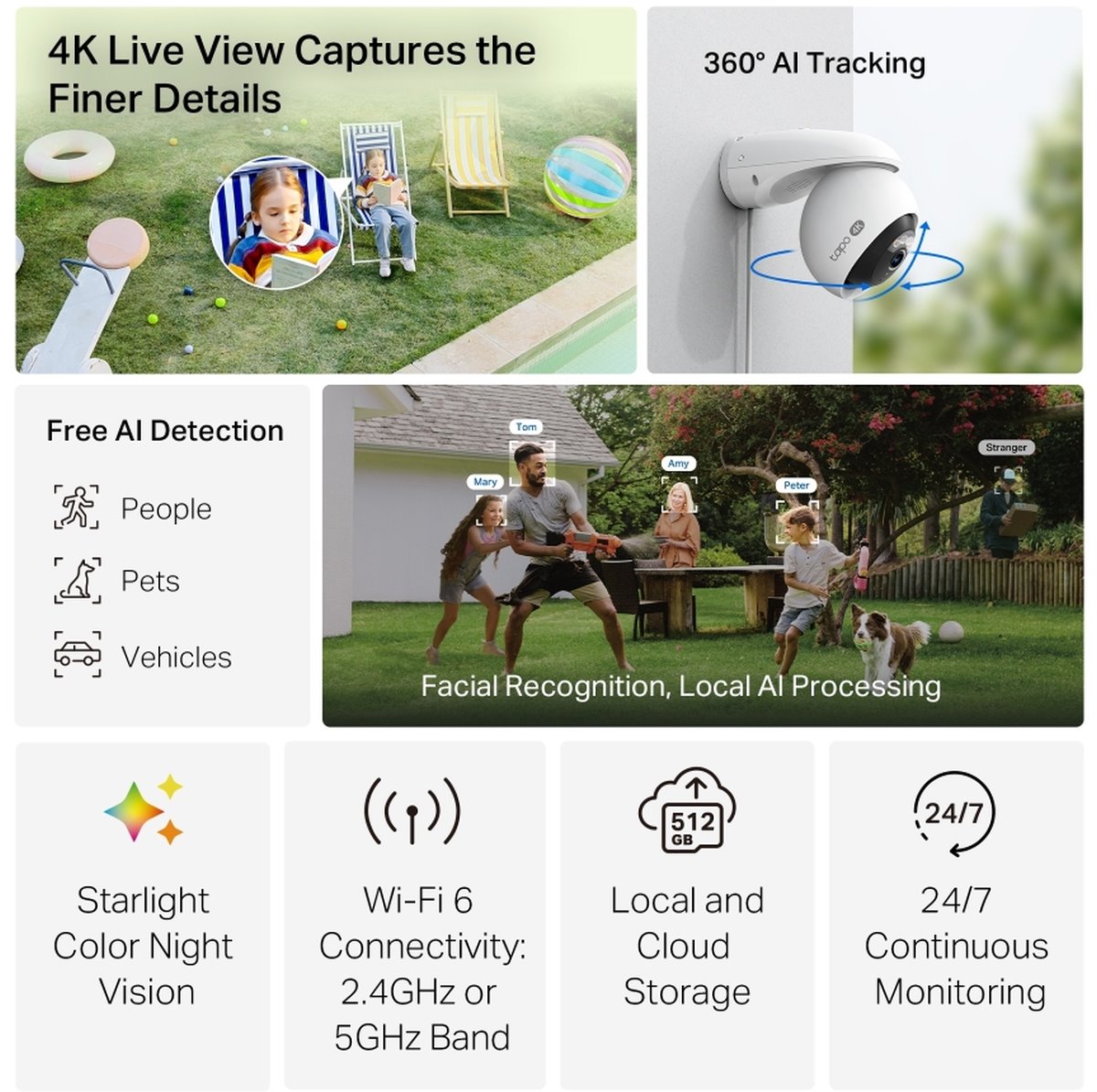 - Flexible Storage Options: Choose from local microSD† storage up to 512GB or the secure Tapo Care‡ cloud service for additional peace of mind.