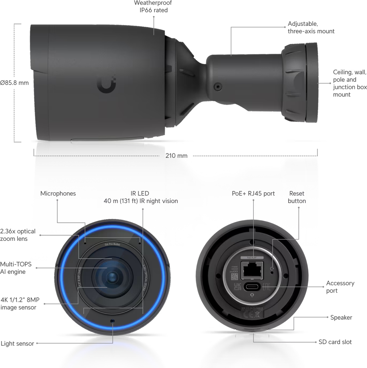 Ubiquiti G6 Pro Bullet - 8MP IP Camera, Black