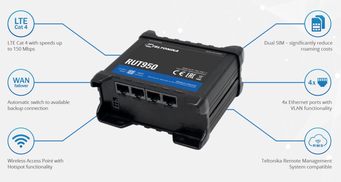 Teltonika RUT950 Industrial 4G/LTE & WiFi Dual SIM Router - Bazar