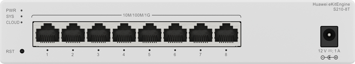 Huawei S210-8T is a reliable managed cloud L2 switch with a switching capacity of 16Gbps and (8) Gbit ports. It supports management via a local web interface as well as cloud management (eKit SNC / eKit mobile app). The maximum power consumption is 8.9W.