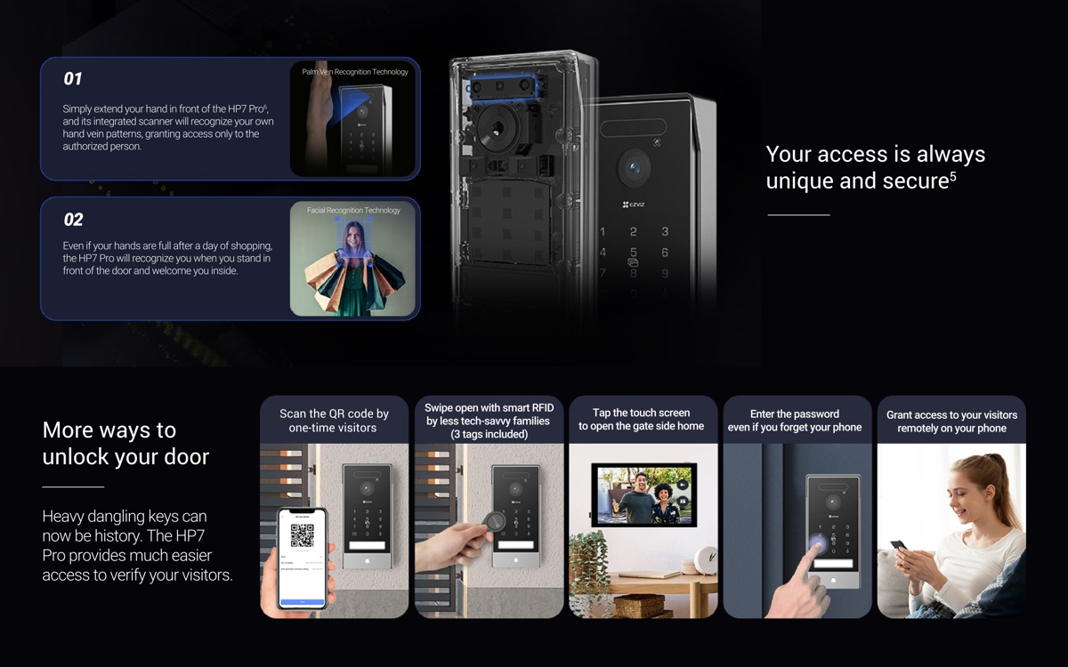 The Ezviz HP7 Pro is a 4K video intercom kit suitable for homes and small businesses. With the EZVIZ app, you can communicate with the door station and receive video calls anytime, anywhere.