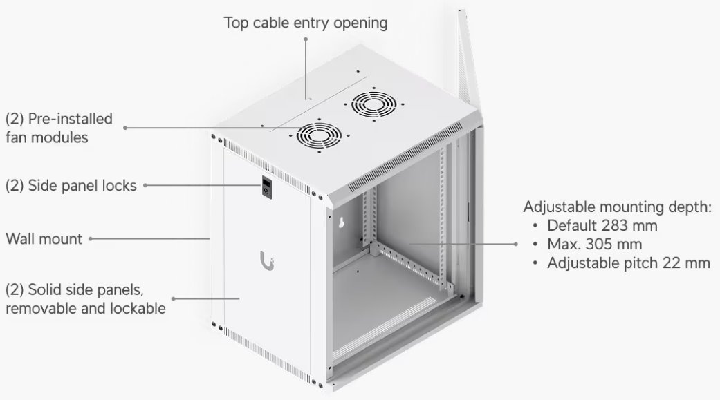 Ubiquiti 12U Rack Cabinet, Wall mount, 450mm, perforated doorNew