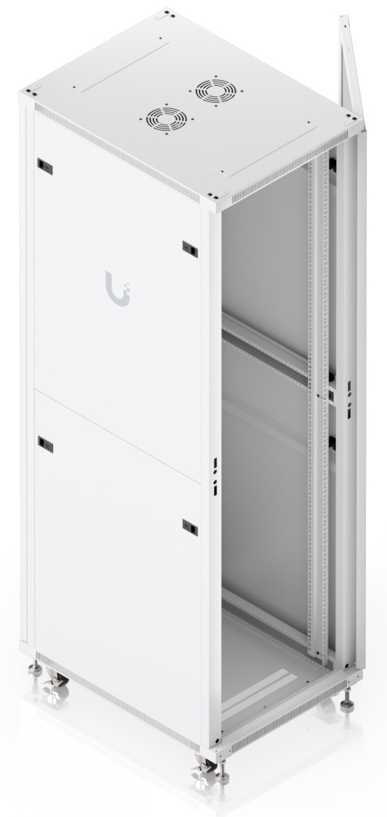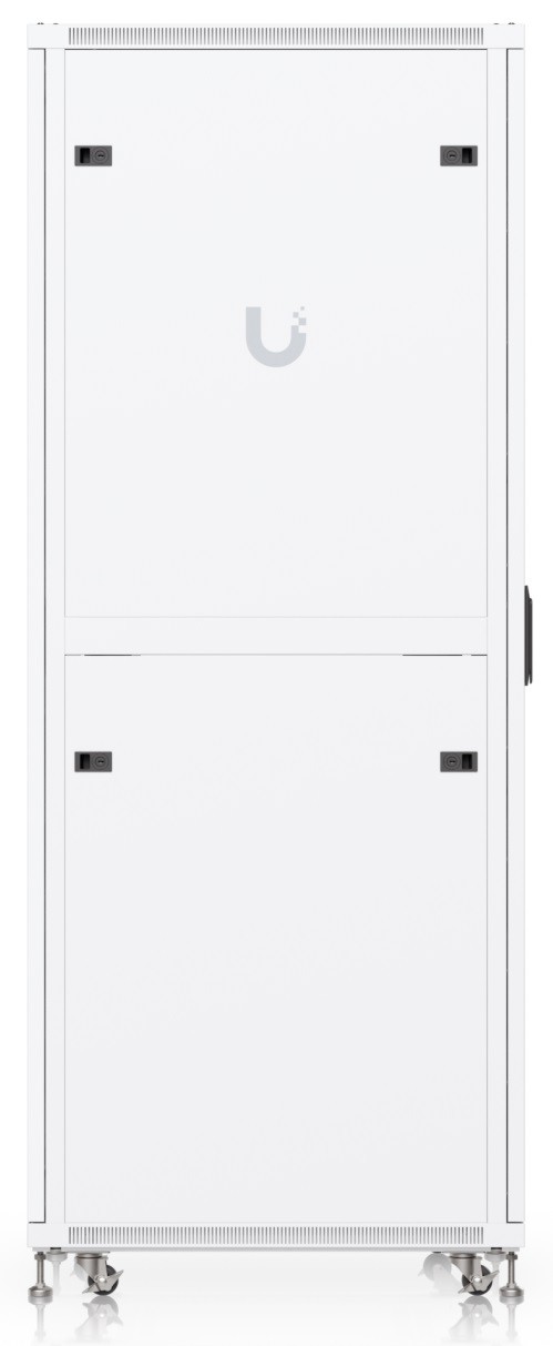 Ubiquiti UACC-Rack-42U-800-P is a 19" floor-standing rack in 42U size, delivered fully assembled and equipped with a perforated front and back door panel, which — just like the split removable side panels — can be locked to prevent unauthorized access. The door is factory-set to a left-hand orientation with the option to reverse it. With a depth of 1000 mm, the rack allows the installation of networking devices up to 682 mm deep.