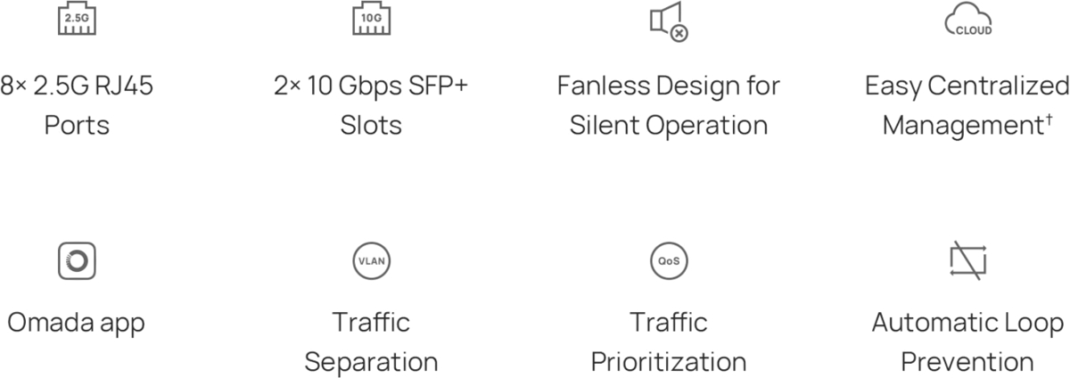 - (8) 2.5Gbps ports and (2) SFP+ slots