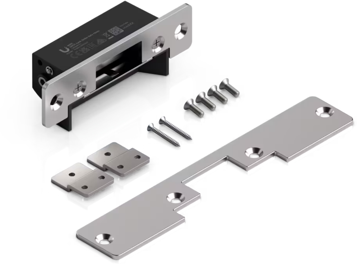 The Ubiquiti UACC-Lock-Strike-Safe-15mm is an electric strike lock that connects to a UniFi Access Hub. The lock is fail-safe, unlocking in the event of failure. It can be installed in wooden, steel, and aluminum frames. Holding force of up to 1200 kg. Power is supplied via a two-wire terminal block 12V/400mA.