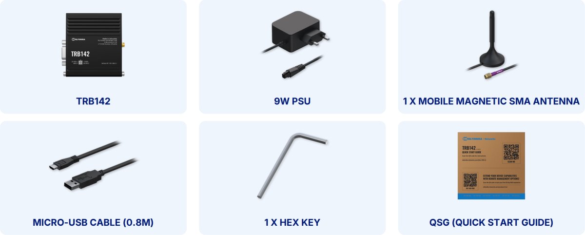TRB142 LTE RS232 Gateway is a small, lightweight and energy efficient IoT device equipped with mission-critical LTE capabilities, an RS232 serial communication port and a Linux environment offering a high degree of customization, designed to do IoT projects with ease.