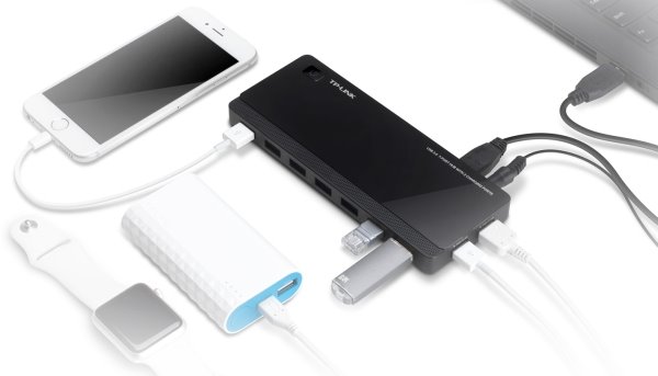 USB хъбът UH720 разширява компютъра със 7 допълнителни USB порта, така че не е необходимо да се подменят отделни устройства в портовете.
