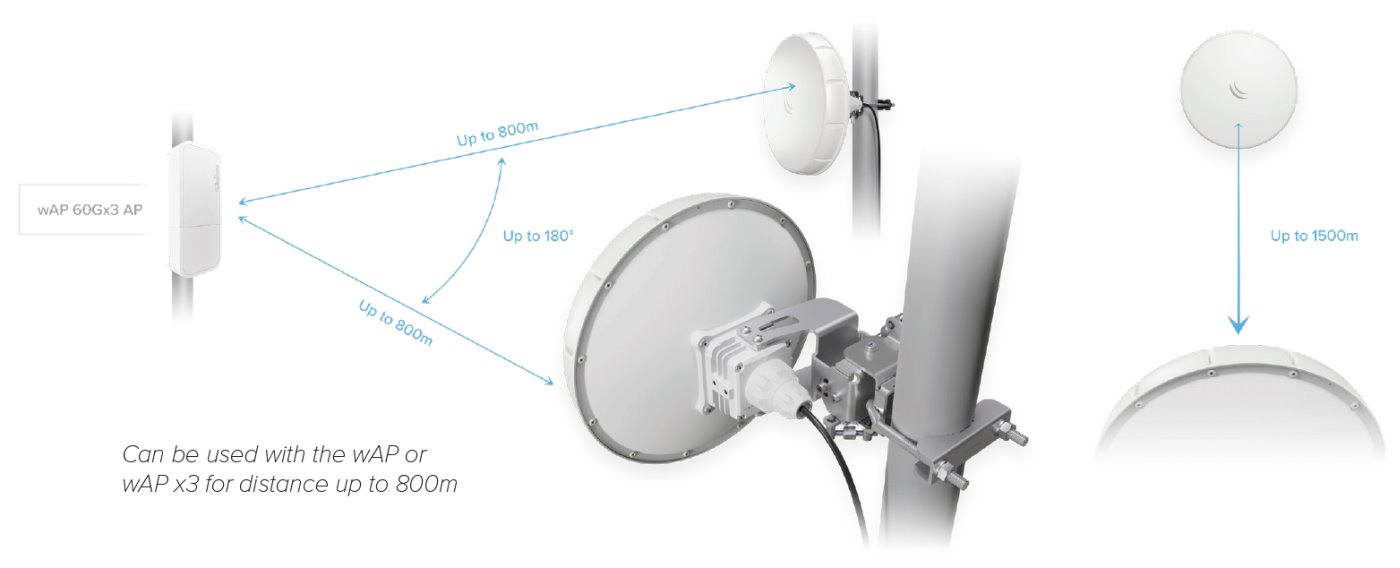 Това е автоматичен превод. Оригиналния текст може да видите тукЕкипът на MikroTik събра и взе под внимание вашите отзиви, за да направи достоен наследник на нашата популярна безжична телена чиния. Сега сме горди да ви представим най-доброто plug-and-play 60 GHz решение за връзка от точка до точка до момента – Wireless Wire nRAY. Това е комплект от две предварително сдвоени устройства, които създават защитена AES криптирана безжична връзка.