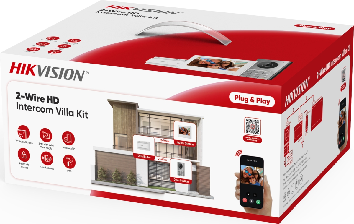 Hikvision DS-KIS706EY Complete Kit - Monitor+Door Station with a Keypad+Power Supply, 2-wire